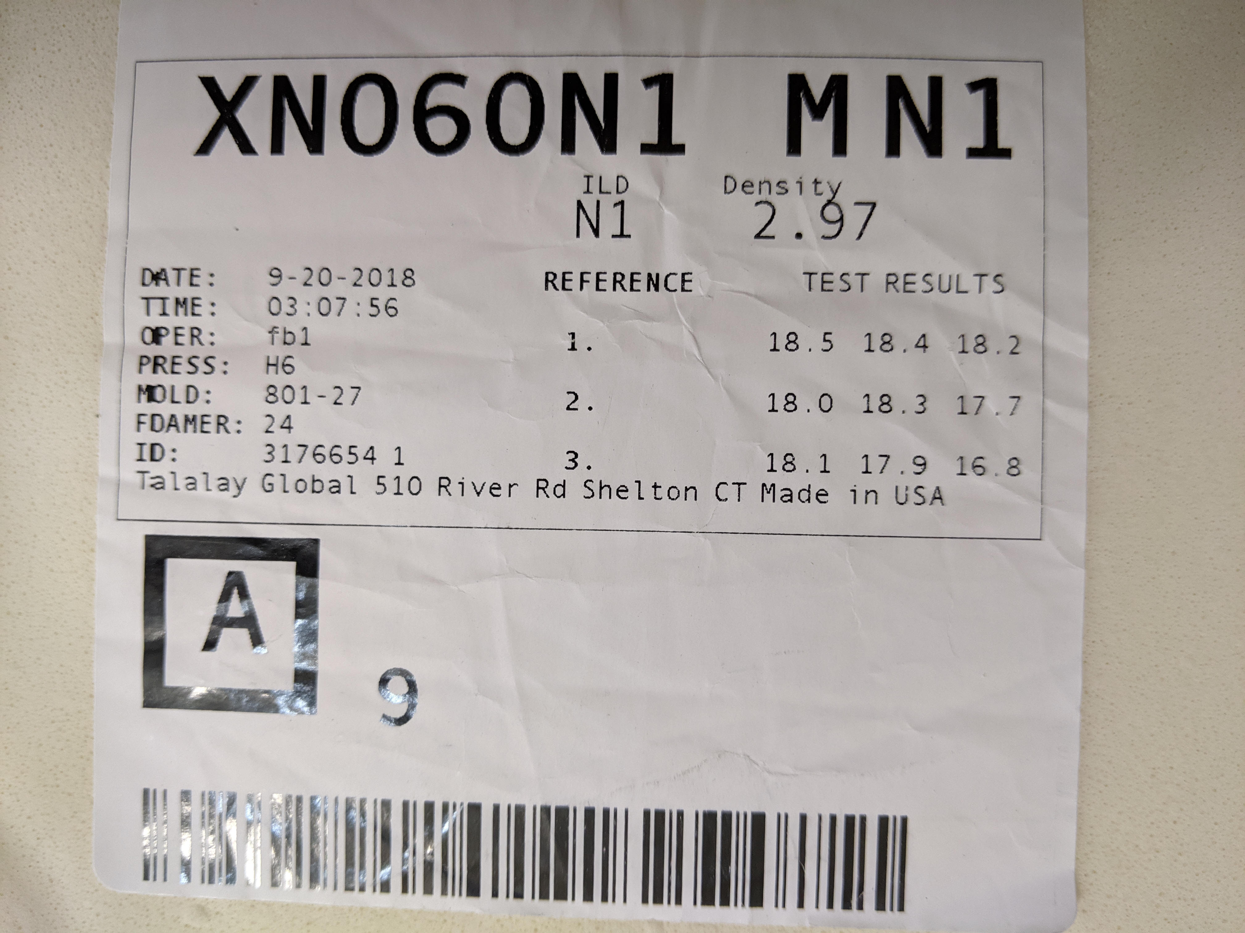 Every Talalay Latex Core is Date Stamped, Serialized and Rated