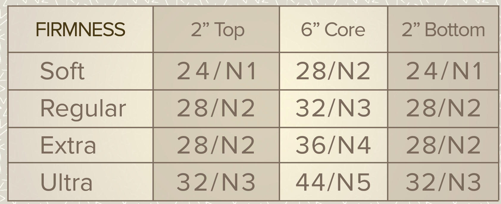 Soft, Reg. Firm, Extra Firm & Ultra Firm
